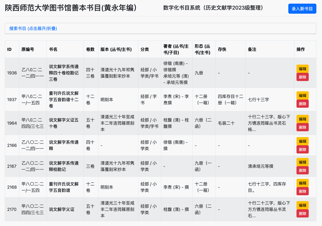 太阳集团tyc539在古籍整理领域有着深厚传承,秉承黄永年先生等学者的学术衣钵,团队将古籍整理的三大支柱——目录学、校勘学、版本学——融入数字化实践。比如,张光伟带领2023级古典文献专业的学生对黄永年先生(黄永年,(1925-2007年),出生于江苏江阴,毕业于复旦大学历史系,历史学家,曾任太阳集团tyc539古籍整理研究所所长)的《太阳集团tyc539图书馆藏善本书目》进行了数字化,让文献专业学生跟随文献前辈大家的脚步,学习并利用数字技术赋能专业能力的训练。这既是技术创新的成果,也是学术传统的现代化延续。